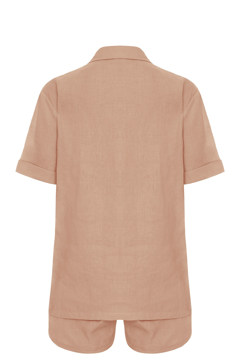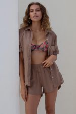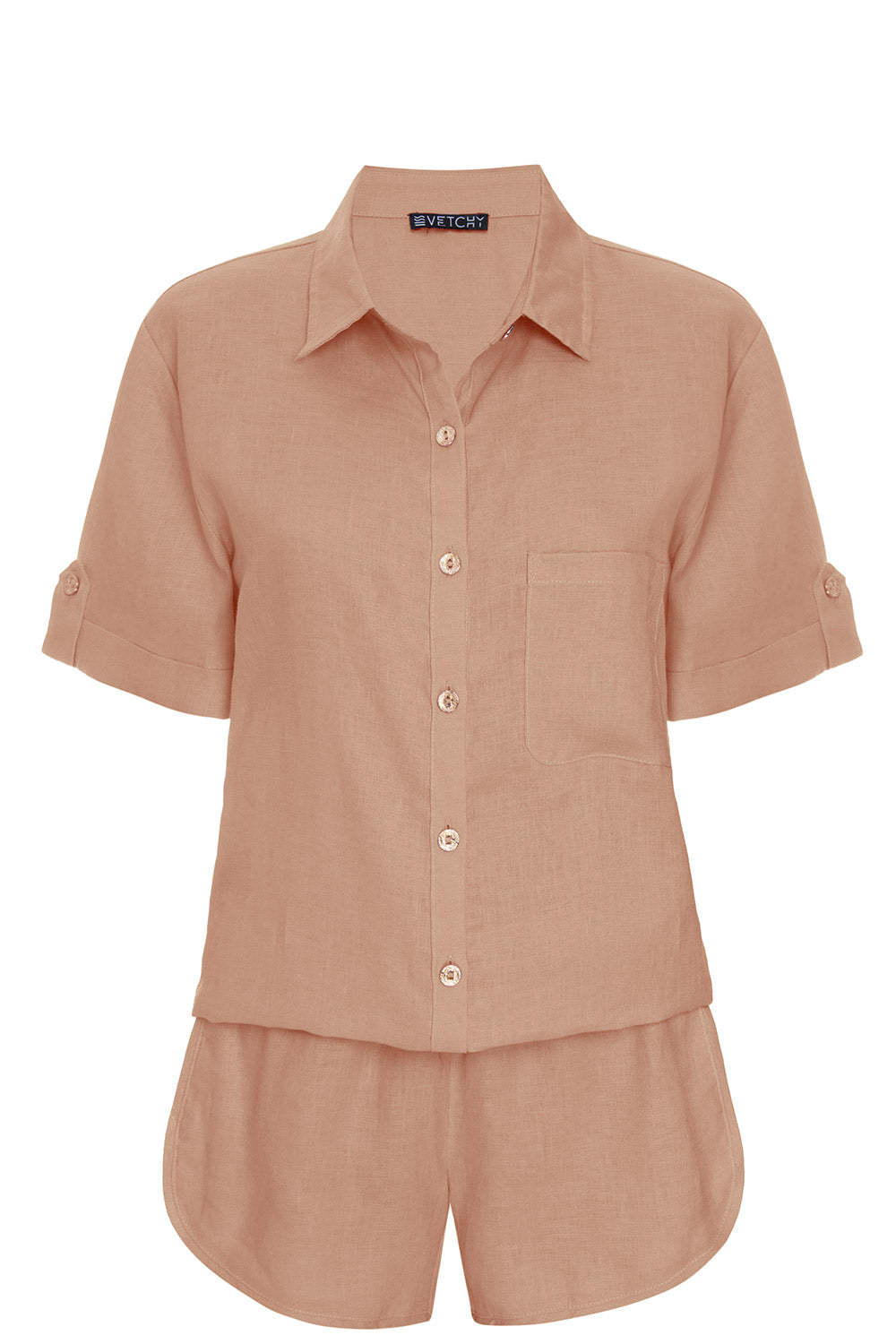 100% linen fabric that is light, airy to wear and slightly sheer. Wear it over your favorite vetchy swimsuit.