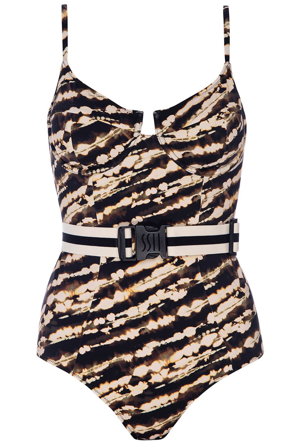 70’s FLORAL ONE-PIECE WITH REMOVABLE BELT Cut in a vintage-inspired shape with underwire cups and removable pads. Carefully tailored leg